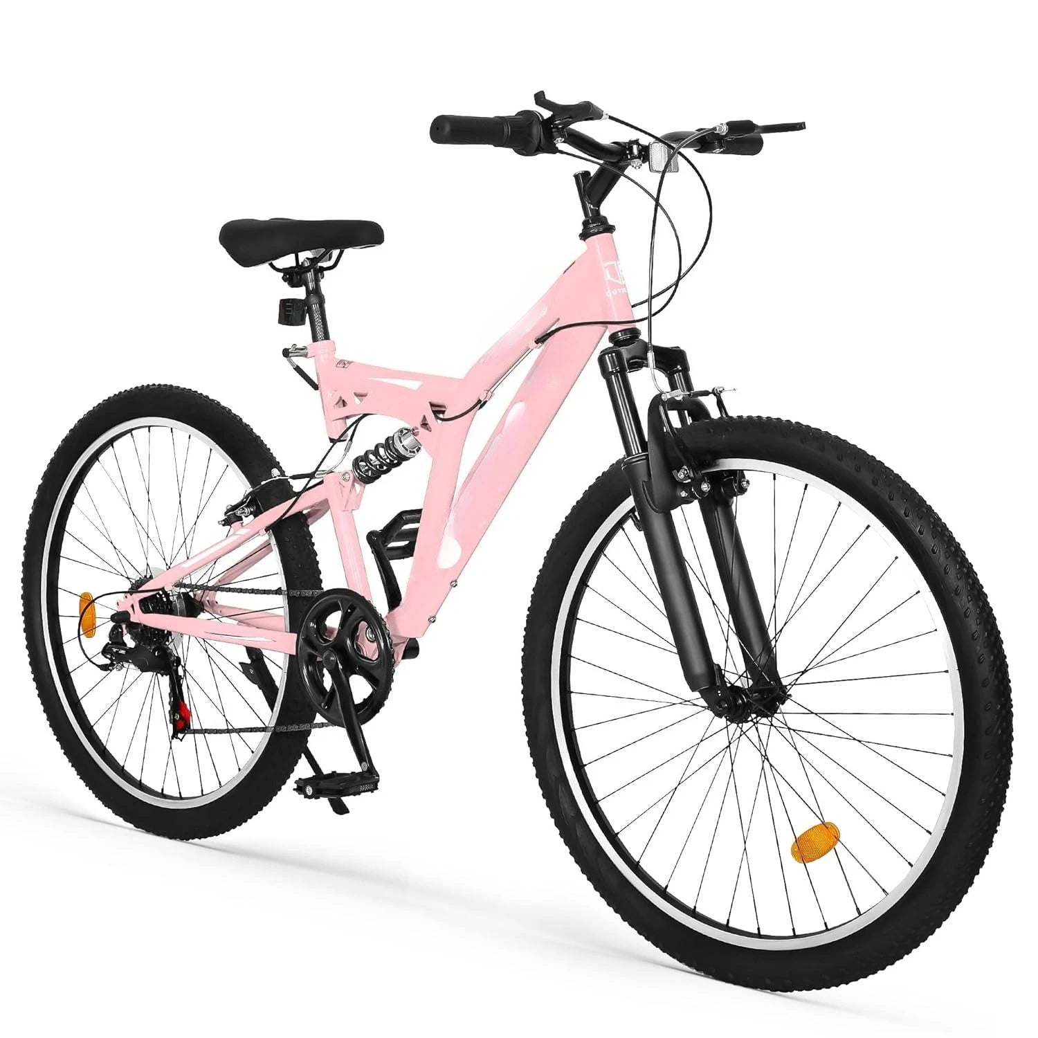 [Frame & Suspension] Built for adventure! The 26" mountain bike features a rugged steel frame with dual suspension—responsive front fork plus rear coil shock—smoothing out rough terrains for effortless rides.