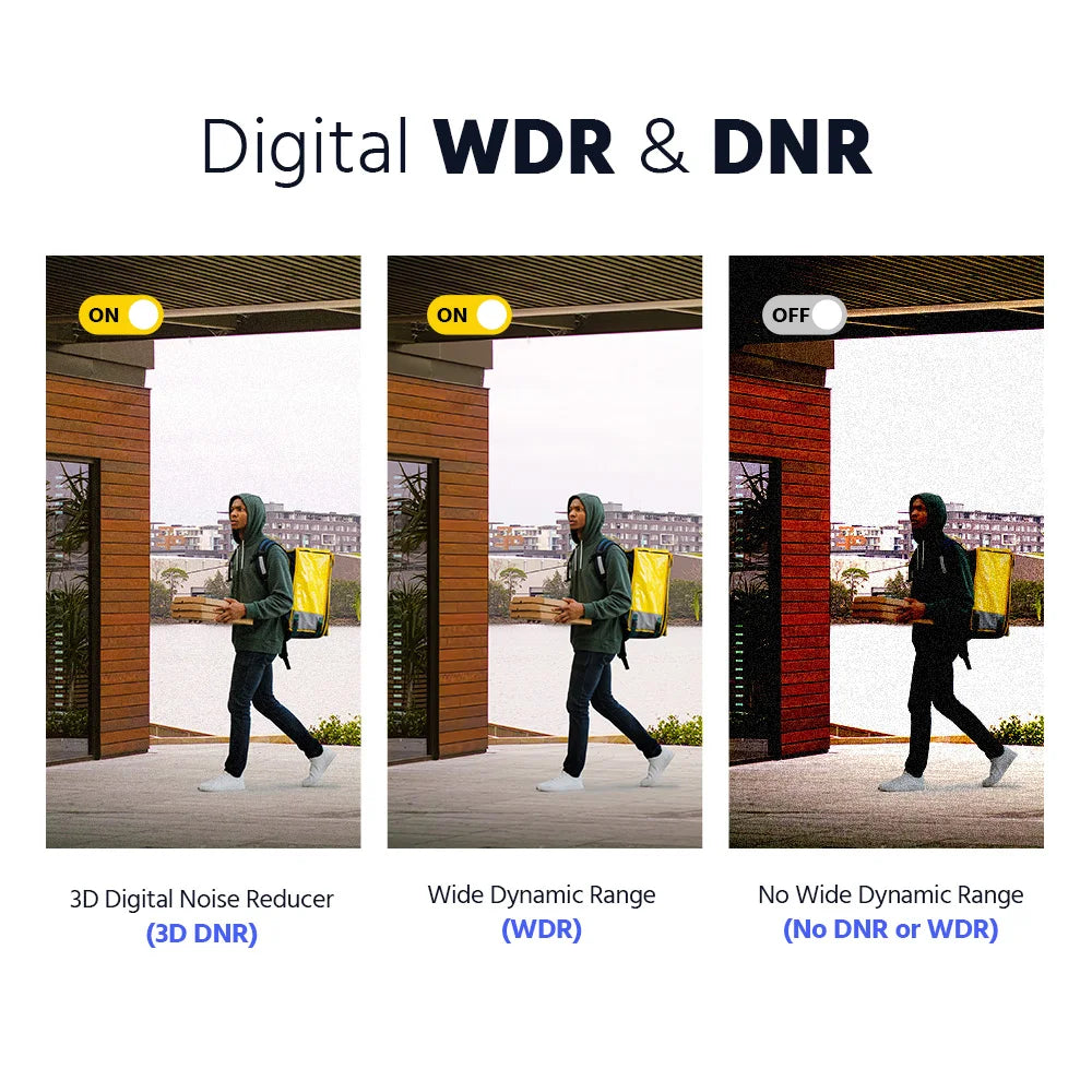 Three night visions to adapt to your needs: smart light night vision, white light night vision, and IR night vision. The smart mode is the default as it can automatically turn on the color night vision once a human/vehicle is detected.