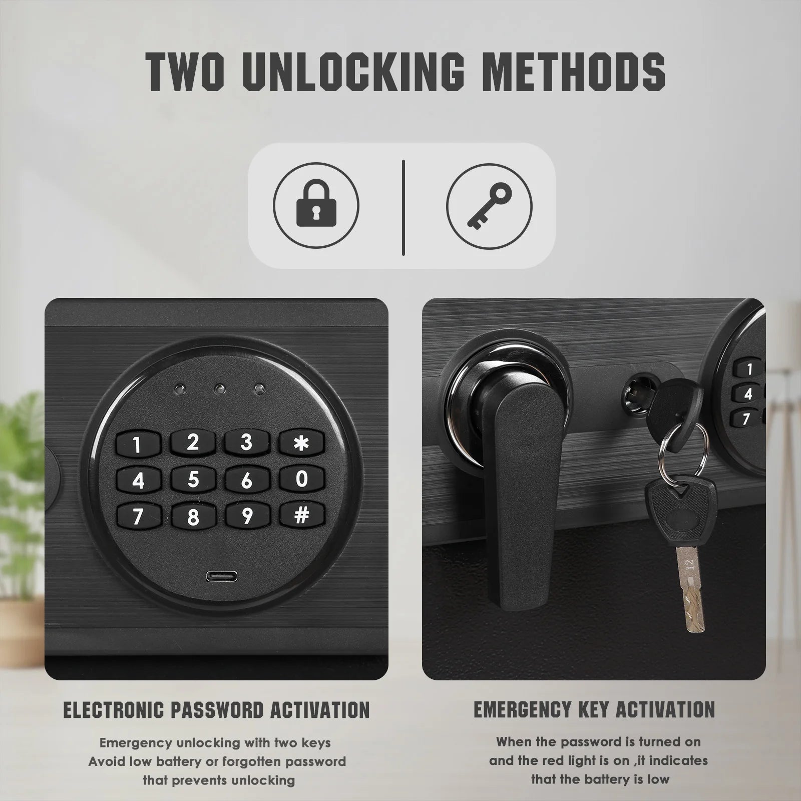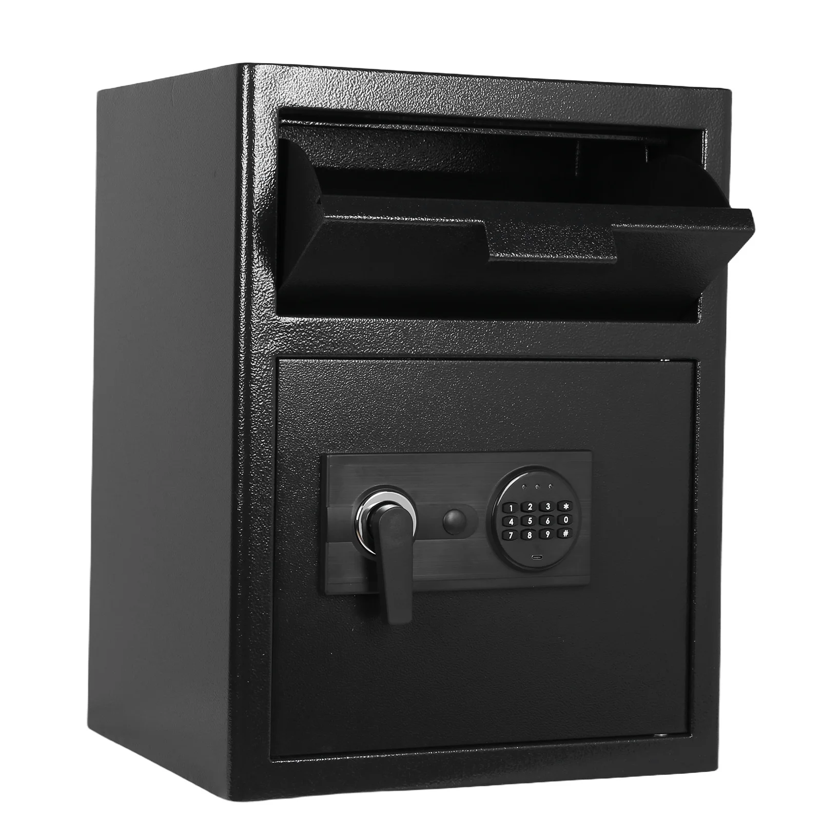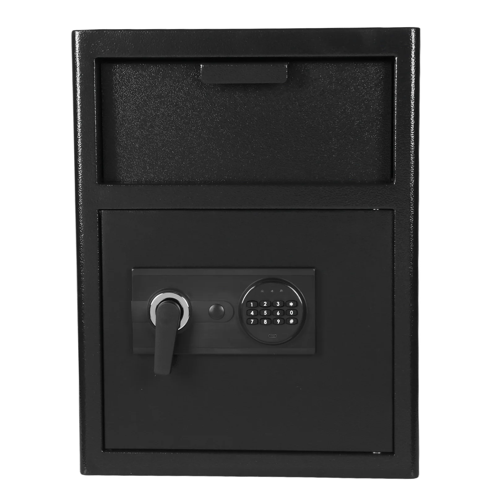Features: 1.Heavy Duty Construction: Built with high-strength steel, this heavy duty business safe delivers outstanding anti-theft and impact resistance. Dependable for securing valuables, it's ideal for those seeking sturdy protection of cash, jewelry, or documents. 2.Advanced Digital Lock Security: Features a digital depository safe system with user-programmable codes, enabling quick access while preventing unauthorized entry. Safeguard your cash and critical files with modern, stress-free reliability in any commercial environment. 3.Convenient Drop Slot Design: The drop slot depository safe box is tailored for easy deposit of bills, envelopes, and valuables without opening the main compartment. Ideal for businesses and offices, improving workflow and deposit efficiency. 4.Comprehensive Anti-Theft Protection: Engineered as an anti-theft safe box, it combines pry-resistant, fireproof, and waterproof elements to protect cash, mail, and essential paperwork against hazards and burglary, ensuring peace of mind. 5.Versatile Application & Trusted Security: This office security chest meets diverse needs in offices, shops, schools, and hotels, providing dedicated safety for your financial assets and confidential records in various professional settings. Specification: Product Size: 520.00 x 400.00 x 350.00 mm Product Size: 20.47 x 15.75 x 13.78 inches Origin: Mainland China Material: Carbon steel