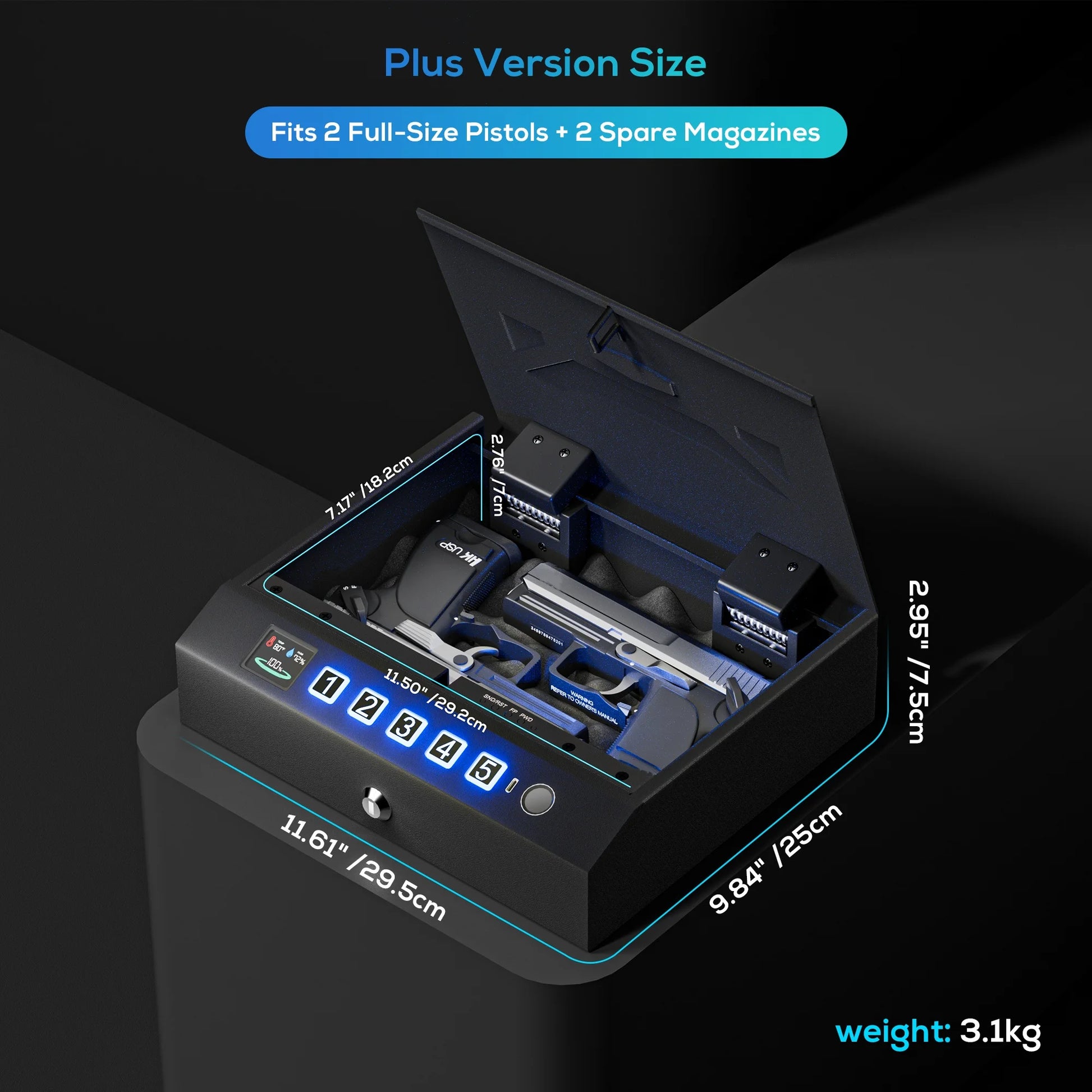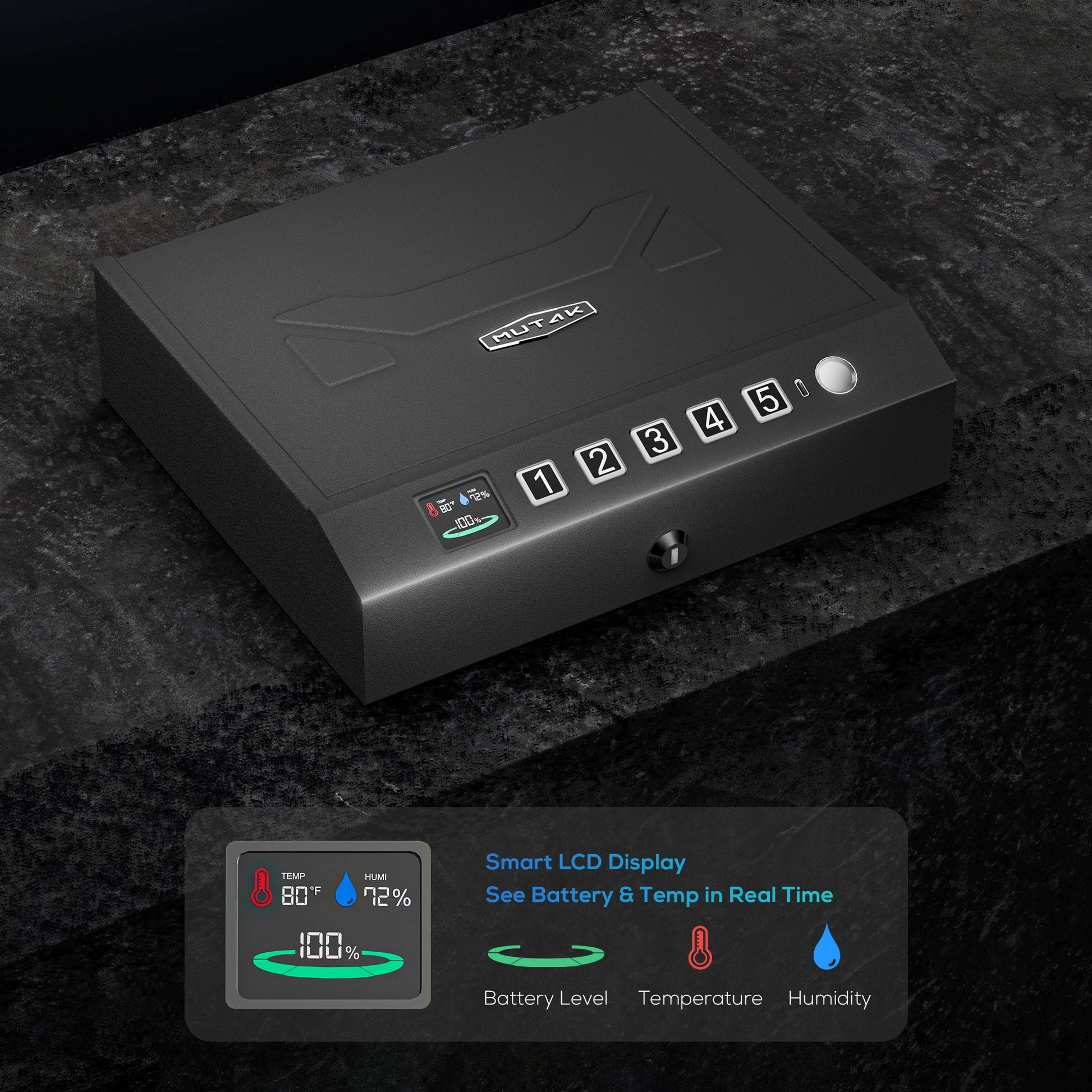 Gun Safe for Handgun, Biometric Pistol Safes with LCD Display&Anti-theft Rope-Hand Gun Lock Box for Desk Drawer,Nightstand,Car