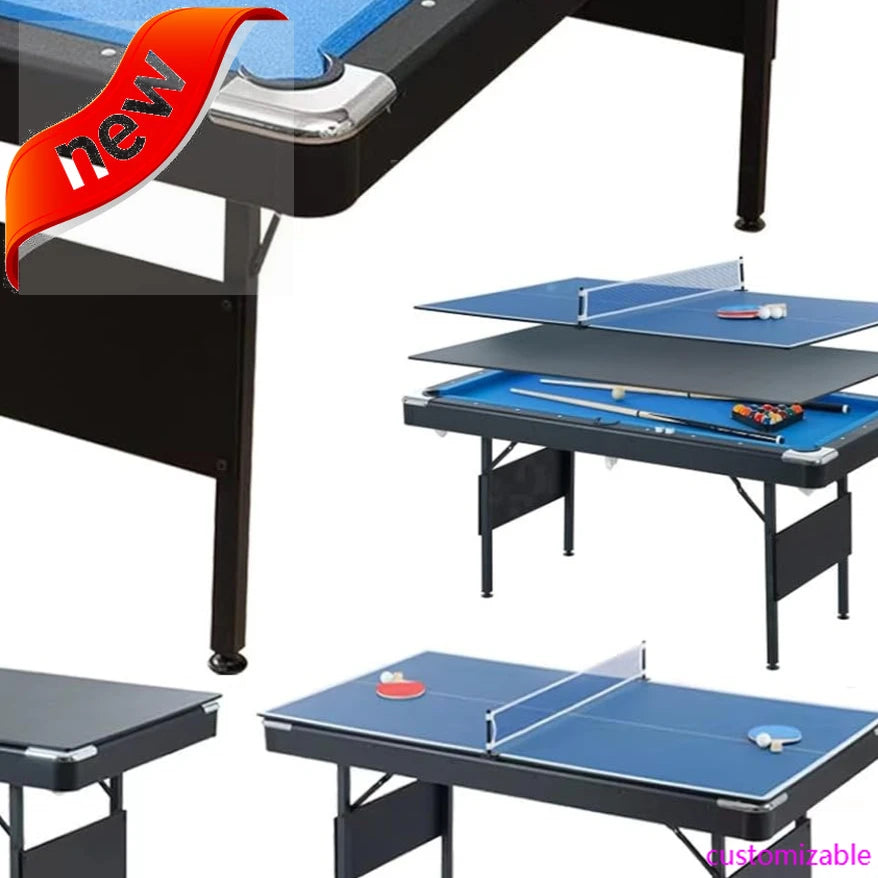 - 🎱 3 in 1 Portable Pool Table--This portable multi game billiard tables is pool table ping pong dining table combo . Enjoy good food and conversation with your family and friends around the dining table. When it’s time for fun, flip the top for table tennis, or remove it completely for billiards. Great for man caves, game rooms, rec rooms or basements,enjoy different games fun.