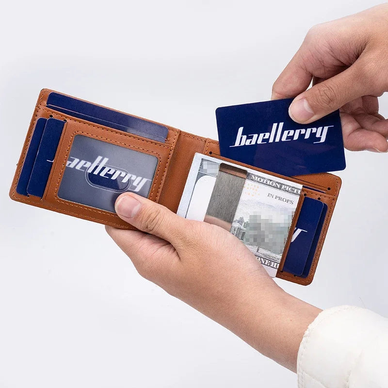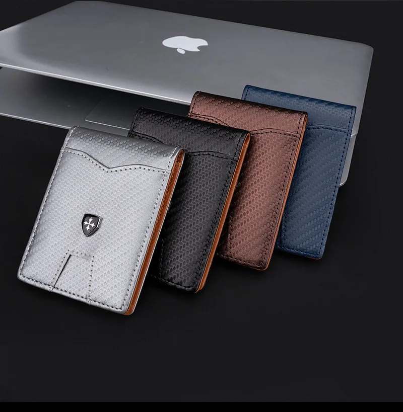 Protection Carbon Fiber Men's Leather Money Clip Wallet With A Metal Clamp Credit Card Slots ID Cash Holder Small Purse